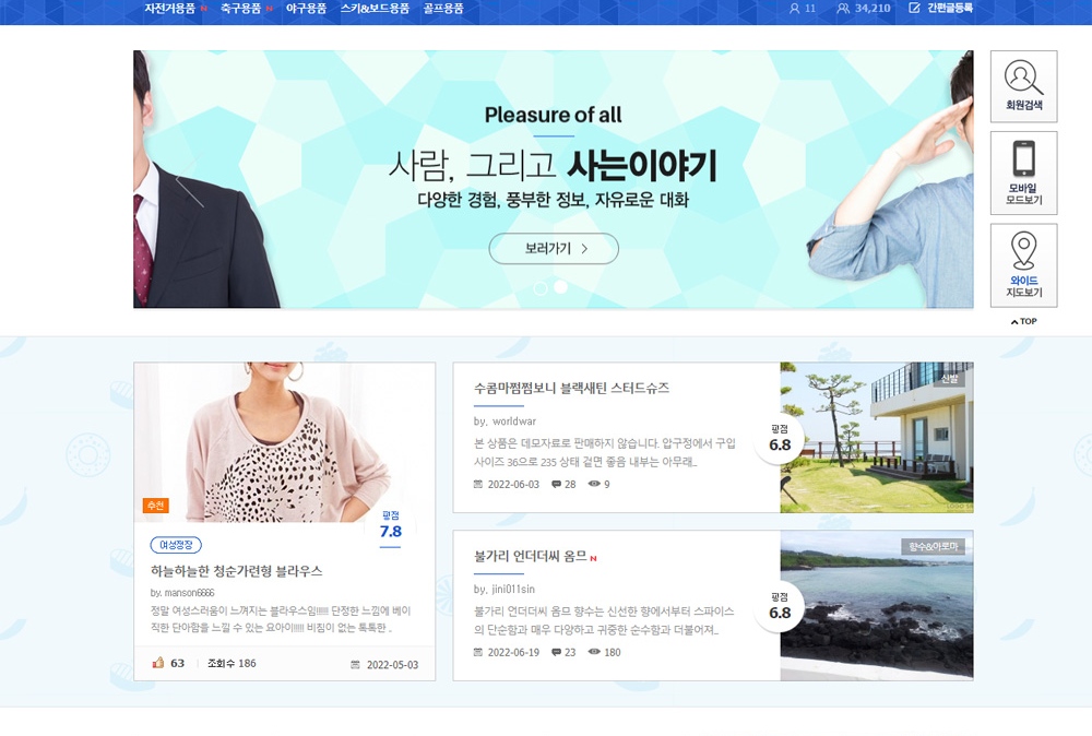 게시판별 개별 폼설정, 다양한 카테고리 설정 등 하나에서 열까지 내 마음대로 만들 수 있는 커뮤니티솔루션으로 디시인사이드,무신사,SLR클럽,뽐뿌등 각종 커뮤니티 사이트 제작이 가능합니다.